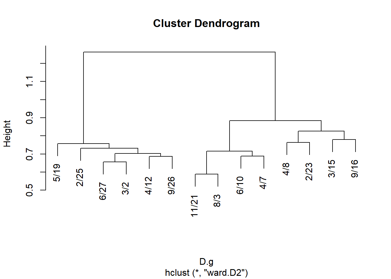 hc.g <- hclust(D, method = "ward.D2")