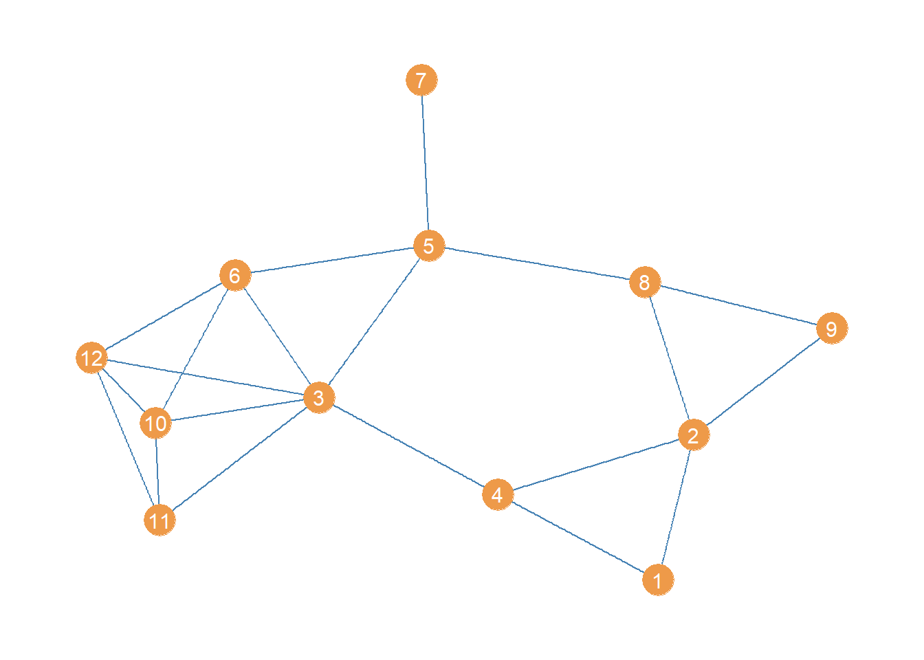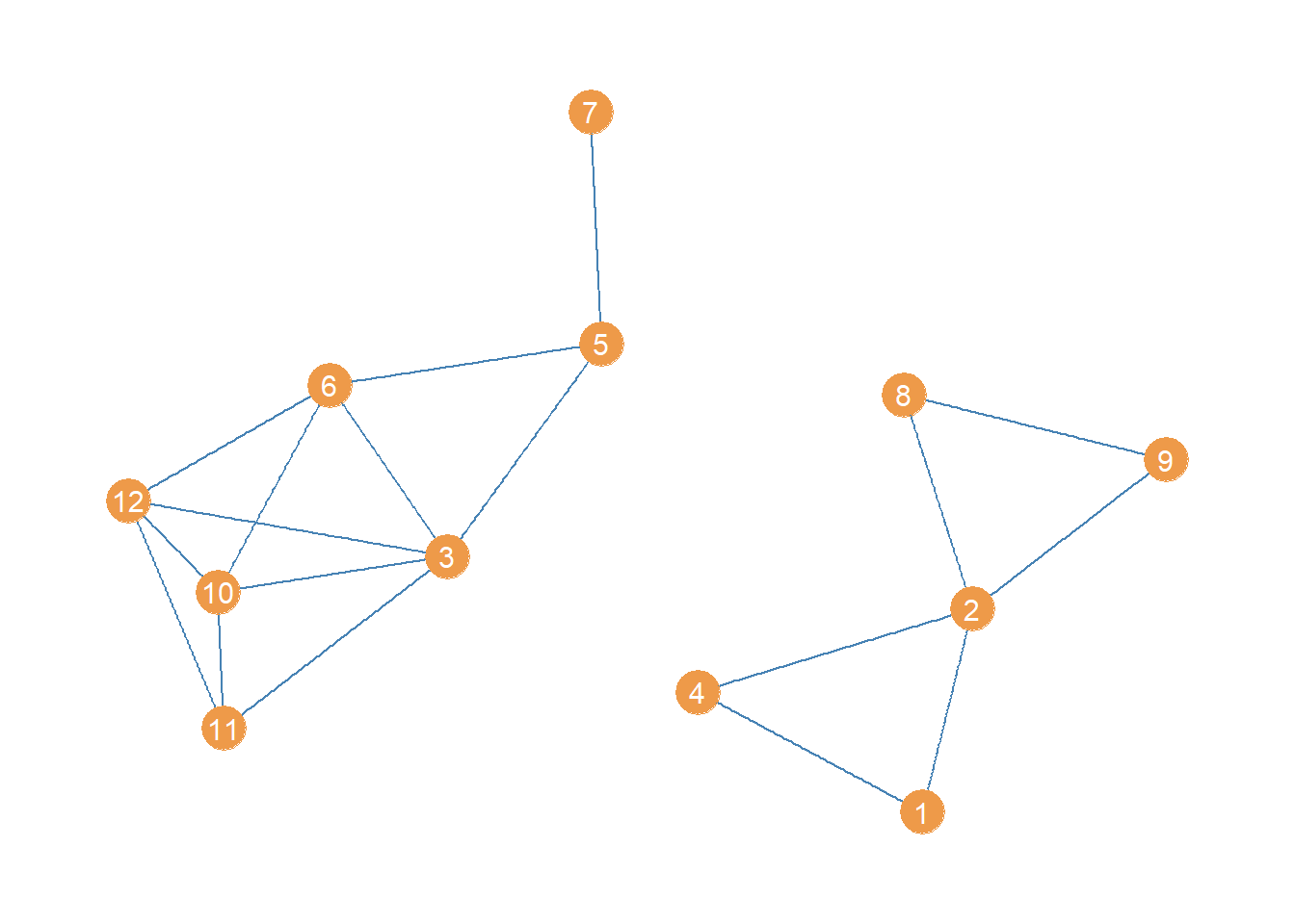 For this example, we will work with a simplified version of the women lawyers advice network, in which we transform it into an undirected graph. We use the igraph function as.undirected for that: