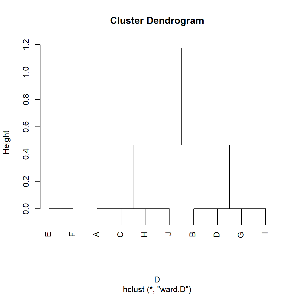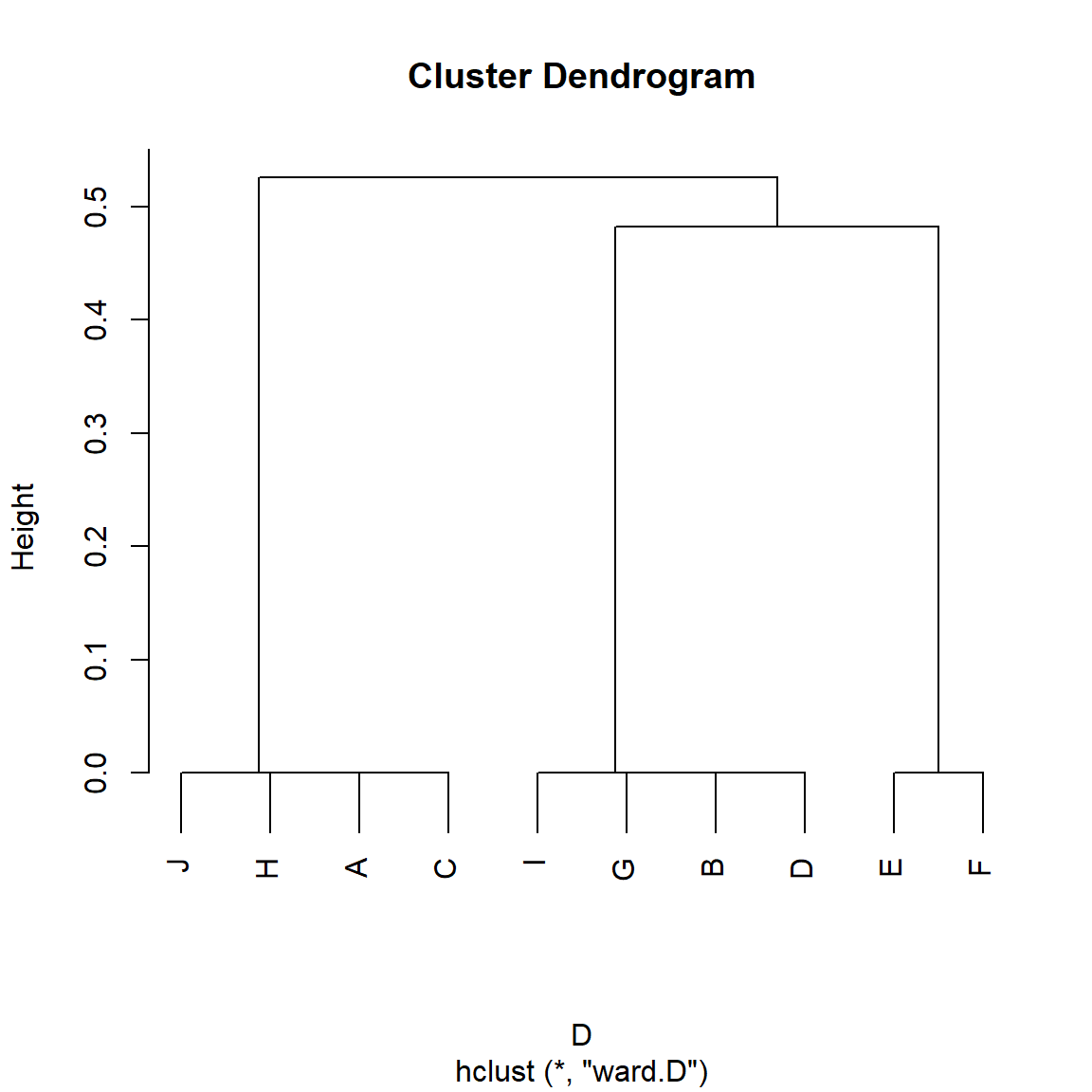 h.res <- hclust(D, method = "ward.D") #hierarchical clustering