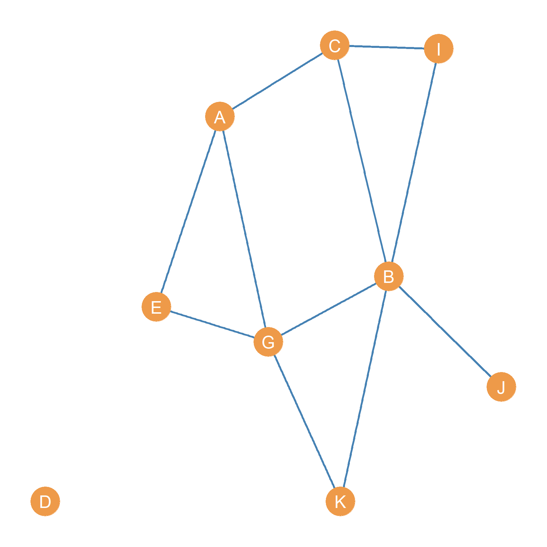 - Go back to Figure 47.1. Draw the node-deleted subgraph of this graph that excludes nodes F, and H.