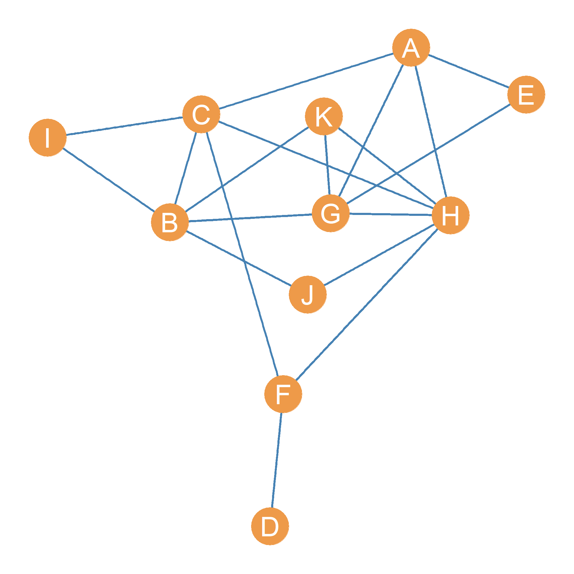 Go back to Figure 45.1. Draw the node-deleted subgraph of this graph that excludes nodes F, and H.