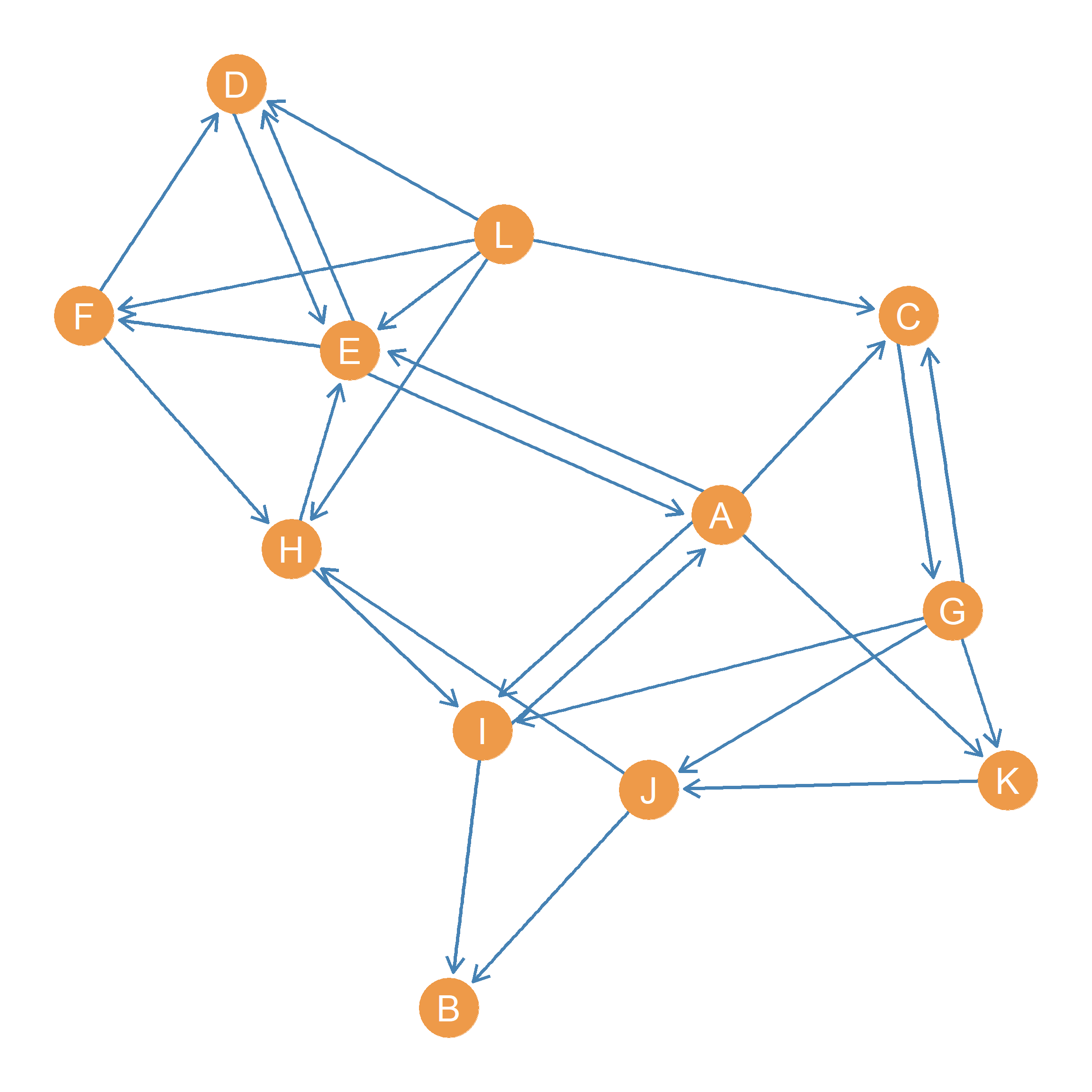 What is the intersection of the out-neighborhoods of nodes A and I?